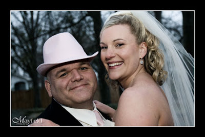 Jollie's pink hat someone brought him. It matched the roses and his tie perfectly. As I was taking the newlyweds back up to the barn for some quick portraits, we had to have a few laughs! Sorry